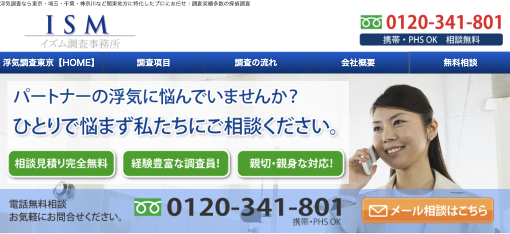 ISM調査事務所は「一都三県に特化」が特徴の探偵事務所。東京・千葉・神奈川・埼玉を専門エリアとし、地域密着型の細やかな調査を提供します。