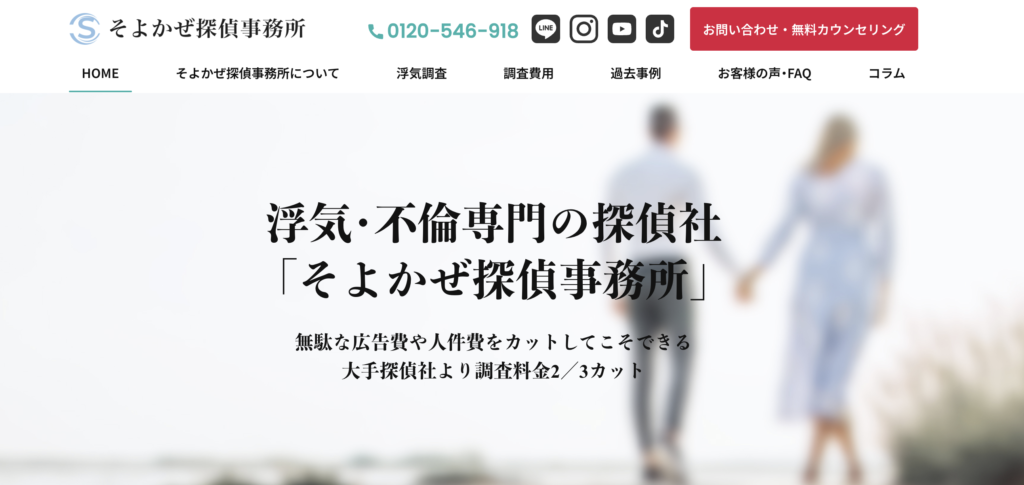 調査員1名1時間8,800円からの明朗会計で、2週間無料GPS貸出サービスも人気。YouTubeで探偵業界のリアルな情報を発信しており、透明性の高さが評価されています。まずはぜひ無料カウンセリングを受けてみてくださいね。